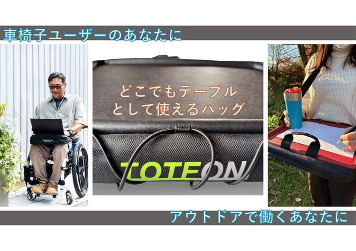 「Makuake(マクアケ)」は、実行者の想いを応援購入によって実現するアタラシイものやサービスのプラットフォームです。このページは、 プロダクトカテゴリの 「いつも膝上に作業テーブルを。車椅子ユーザーが求めた天板付きバッグ【TOTEON】」プロジェクト詳細ページです。