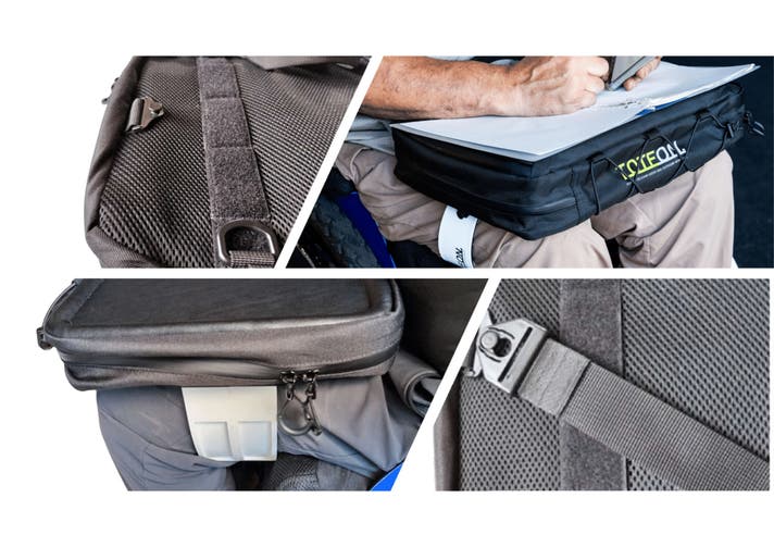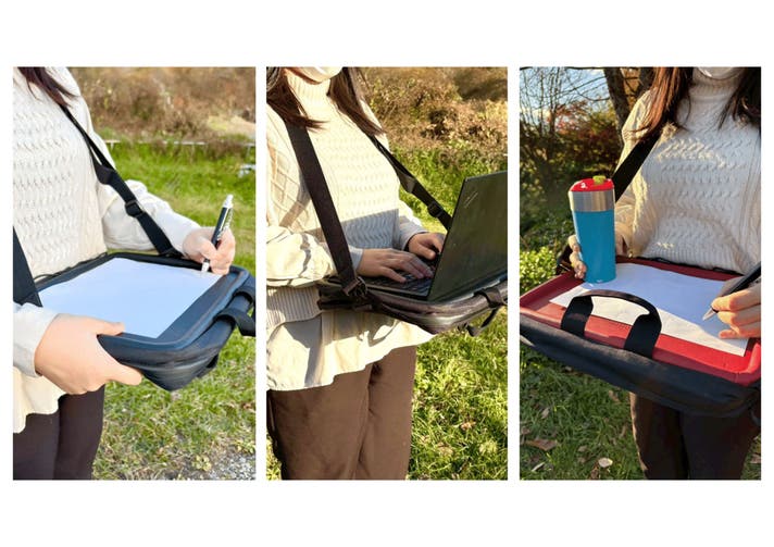 - 画板のように使える肩掛けバッグにもなり、健常なフィールドワーカーの野外作業をサポートします。