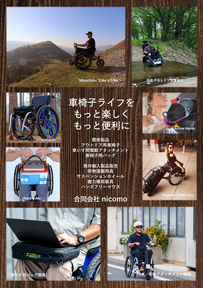 合同会社nicomoは、「車椅子ライフをもっと楽しく、もっと便利に」をモットーに、当事者目線の製品を開発・販売していきます。