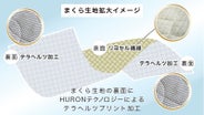 - まくら生地の裏側にテラヘルツ鉱石加工を施すHURONテクノロジーを採用