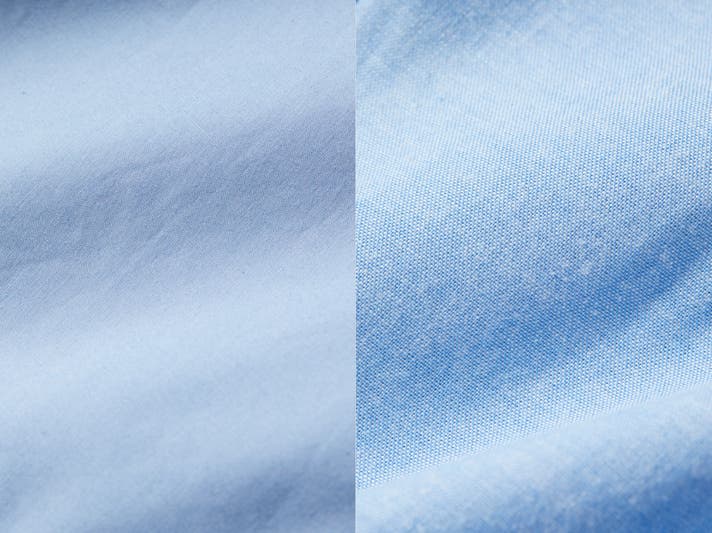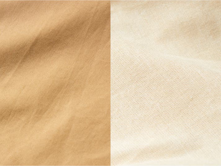 表地には、艶があるのに薄くて軽く、風を通しやすい「タイプライタークロス60s」、インナーには、やわらかく汗をよく吸い、使うほどに肌に馴染む「ダンガリーコットン」を採用。いずれも日本製の綿100%。ポリエステルなどの化学繊維が苦手な方、お肌のデリケートな方にもオススメです。