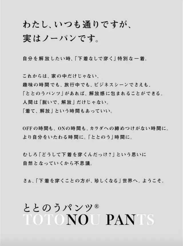 「そういえば今、ノーパンだった!」となんだかワクワクするほど心も身体も軽くなる。これさえあれば酷暑でも下着の出番が少なくなること間違いありません。忙しい毎日の中で、心と身体をほどく習慣=【脱ぐ睡眠™️】を『ととのうパンツ®︎』を通じて提案します。