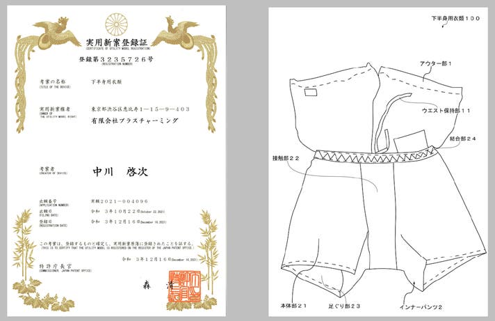 『ととのうパンツ®︎』の特徴は、なんといっても実用新案を取得した特殊な構造(※)。代表の中川ケイジが2011年から丸14年。(一社)日本ふんどし協会の会長として医師や専門家たちと日本の気候に合った「ふんどし」という日本古来の下着を研究してきた知見がここに詰まっています。