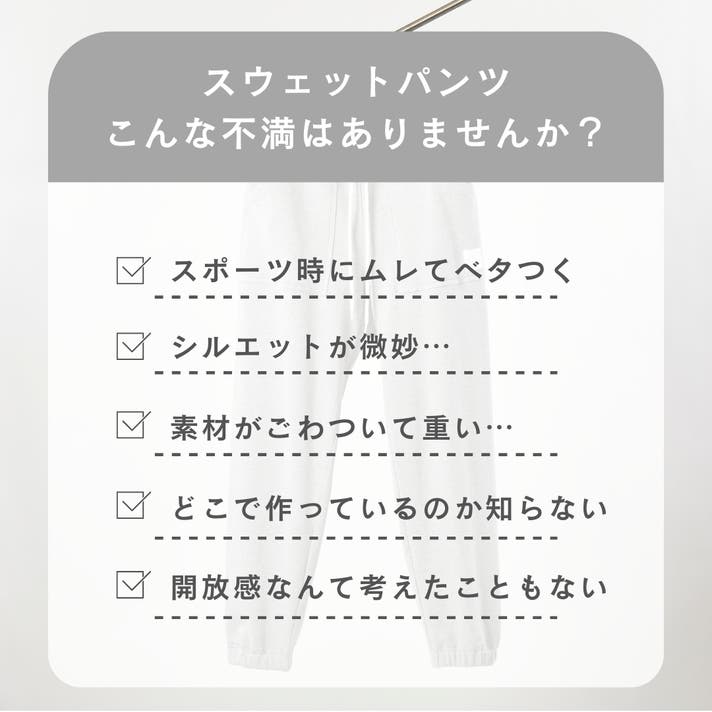 今回のスウェットパンツは、これまでの15年の知見や研究成果を余すところなく詰め込みました。