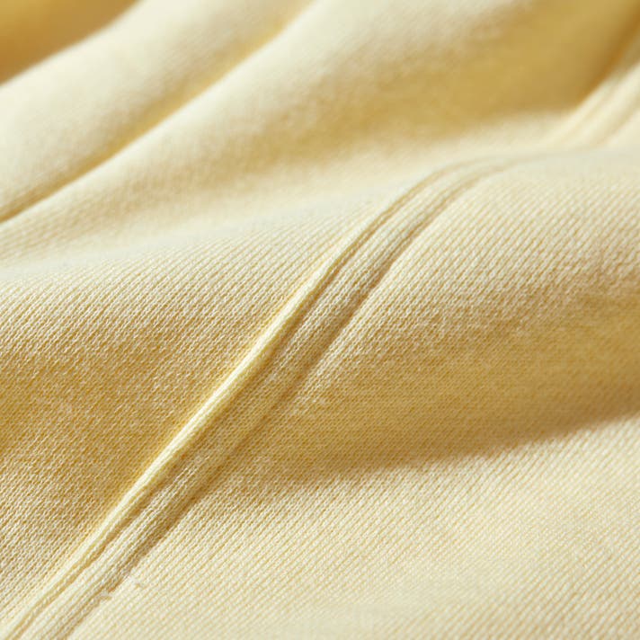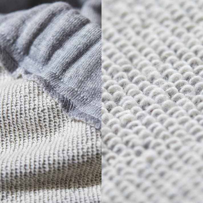 手作業を加えながら、ゆっくり編み上げることにより、スウェット生地がふっくらと柔らかな風合いになるのが特徴です。
