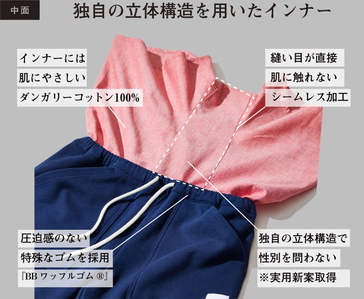 下着の上からの着用でも、このインナーがあることで、太もも周りの汗のベタつきを軽減。いつものスウェットパンツと比べて快適さに違いが出ます。