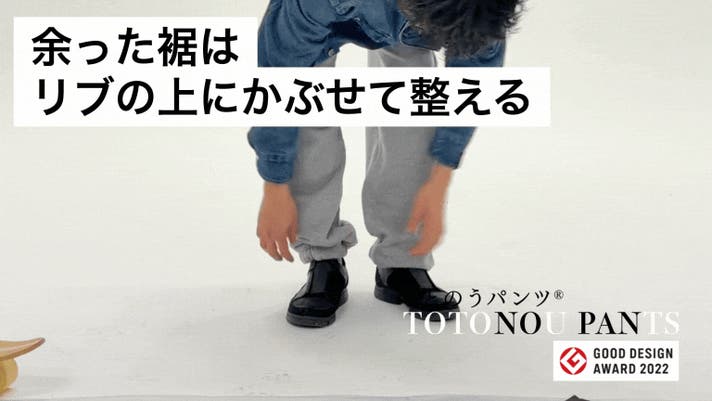 生地の特性上、多少の縮みも考慮して少し長めに設計しています。そのため、少し裾にダボ付きが出る場合は、リブの上に被せるとスッキリします。
