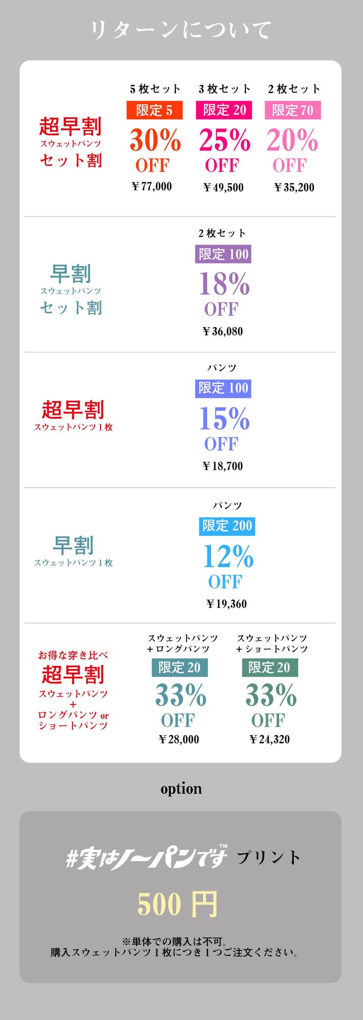 ※本リターンは、【スウェットパンツ購入】後にご購入ください。