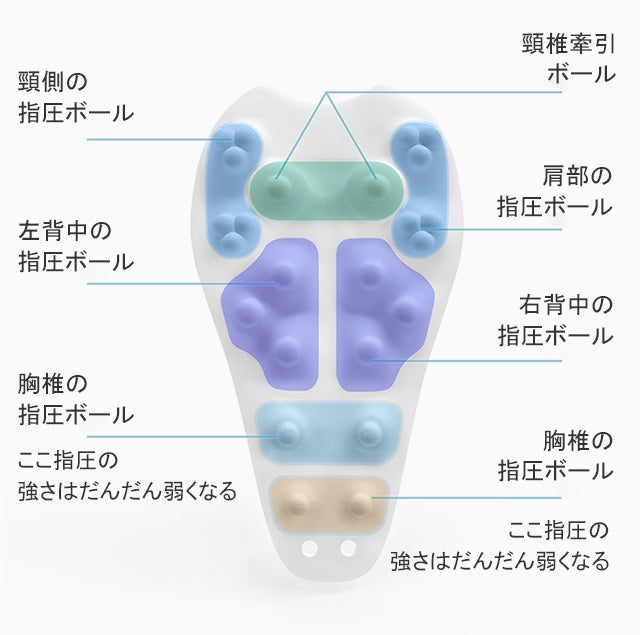 - 2段階の頸椎牽引でストレートネックをケア!特許取得の24点の指圧ボールでお背中等にアプローチ