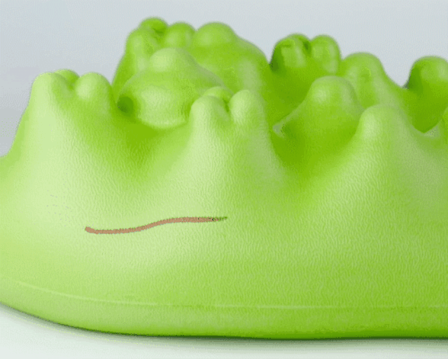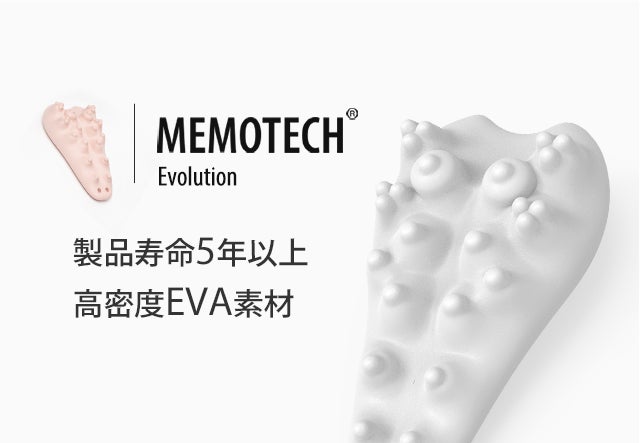 「TOTONUT」指圧代用枕に採用されているのは、高密度EVA素材。主にスポーツシューズの衝撃吸収ゴム等に採用されている、とてもタフな素材です。 衝撃に強く、形を維持する力に長けているので、製品寿命は短く見積もっても5年!より長い期間、心地よい刺激を提供してくれます。