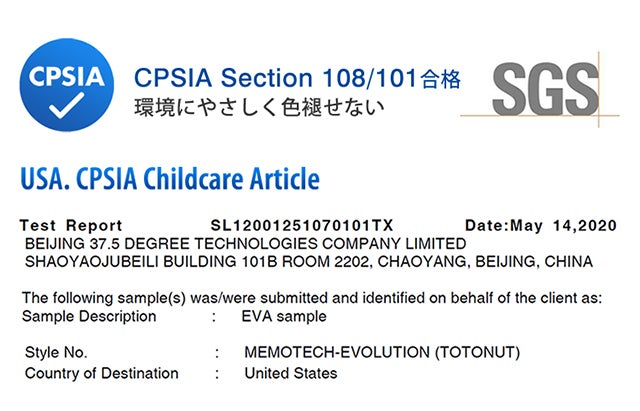 採用している高密度EVAは、子供用品や育児用品に設けられるアメリカの「CPSIA Section 108/101」を合格。 素材に害は無く、安心して使用することができます。