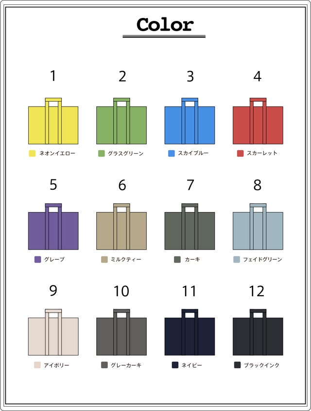 全ての製品は、お好きな12色の中からお選びいただけます。