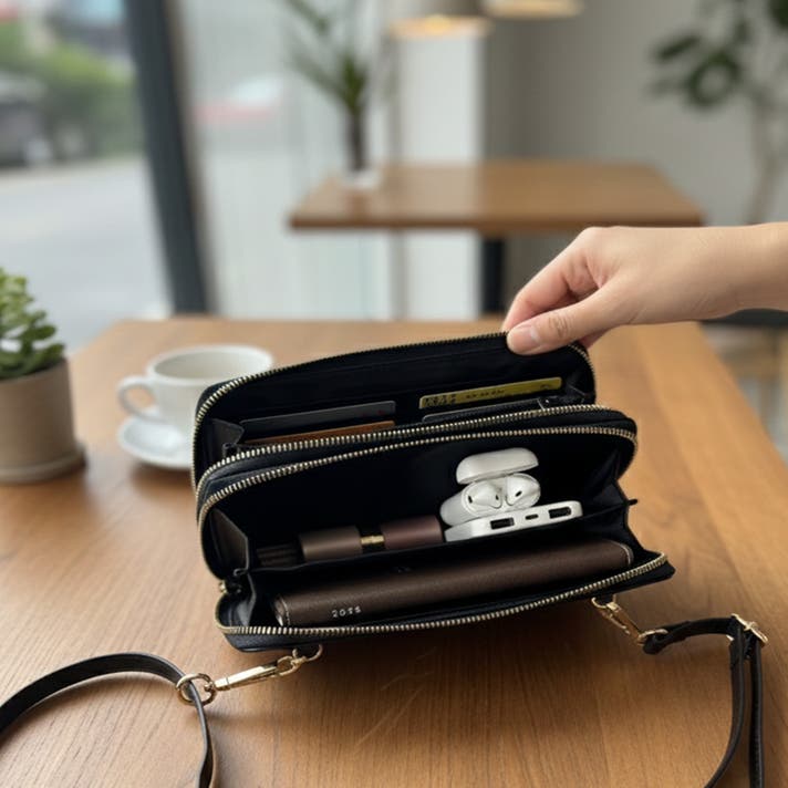 - 財布・スマホ・小物を“迷わず収納”。ダブルファスナーが生む快適さ