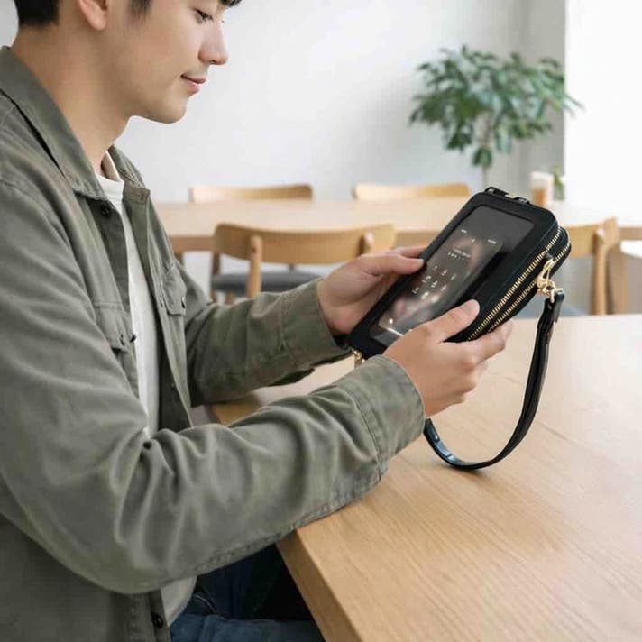 特に「スマホを取り出すほどでもない確認」や、「バッグ越しに中身が見えたらいいのに」という場面は意外と多く、そこで着目したのが“透明ポケット越しに操作・確認できる”という発想です。