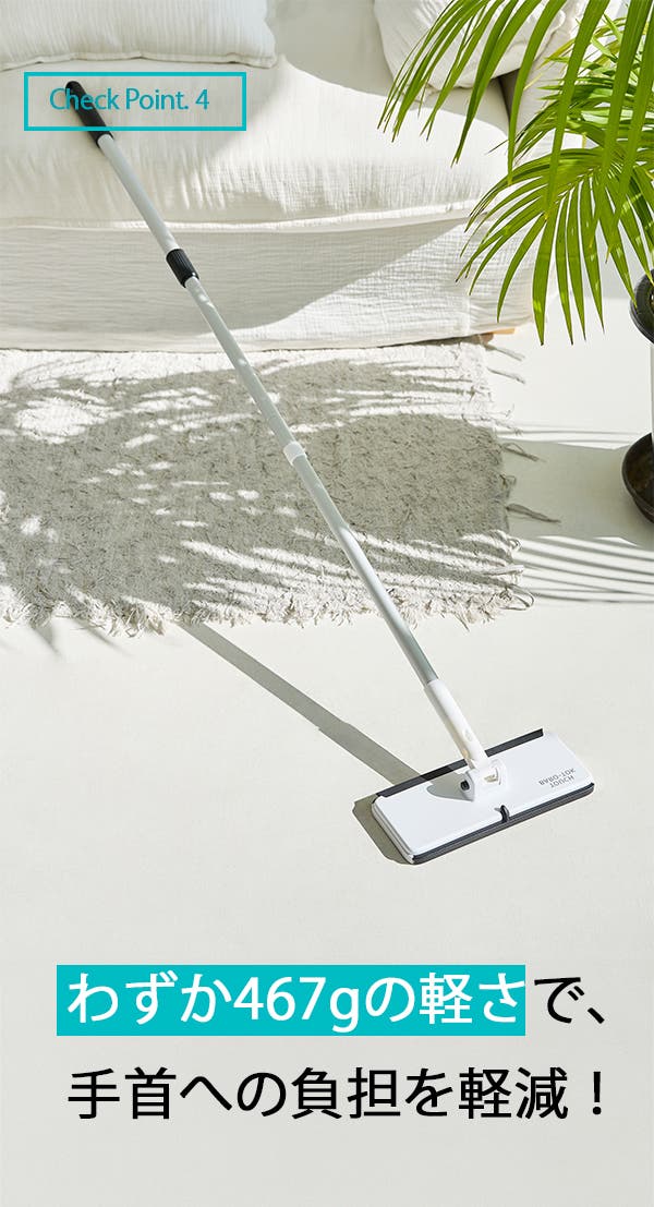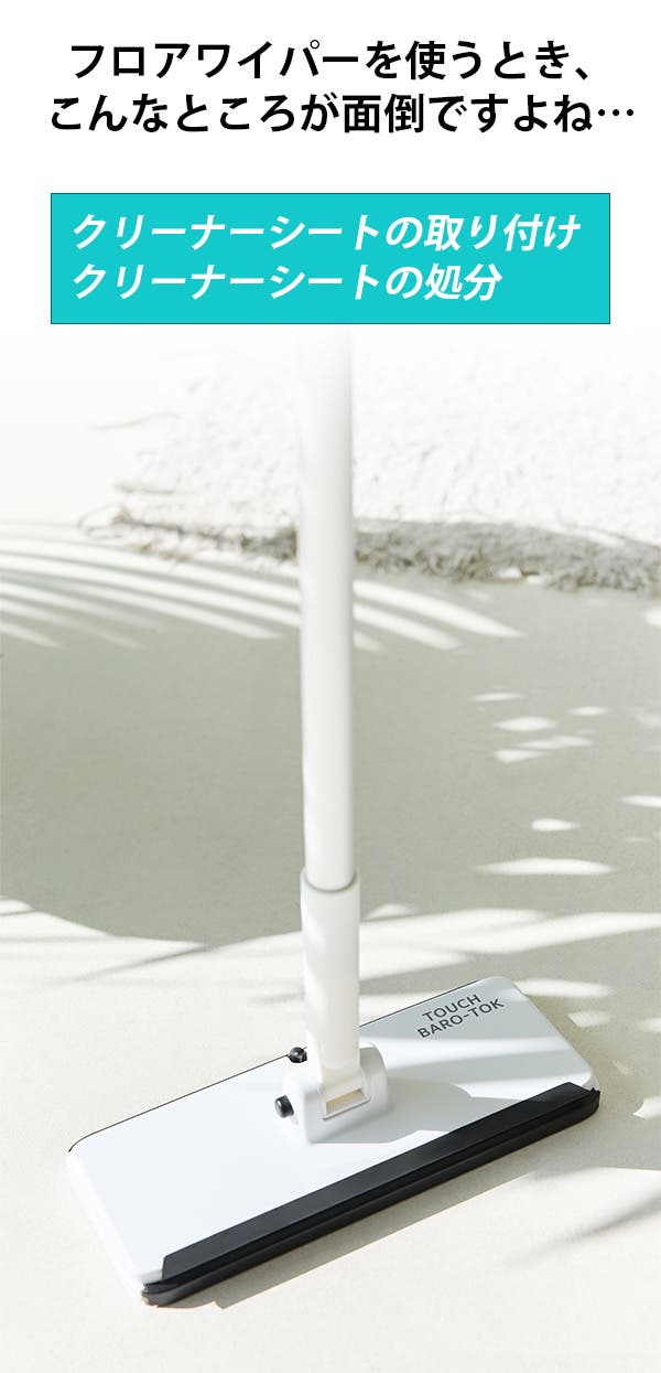 『掃除機は重いから、ワイパーのほうが楽』と使ってはいるけれど、実はどこか不便に感じていることはありませか?前かがみになることが多い現代社会。せめて掃除の時だけは、背筋を伸ばしましょう!基本に忠実なフロアワイパー、ワンタッチ式BARO TALKで、より快適なお掃除習慣を始めてみませんか?
