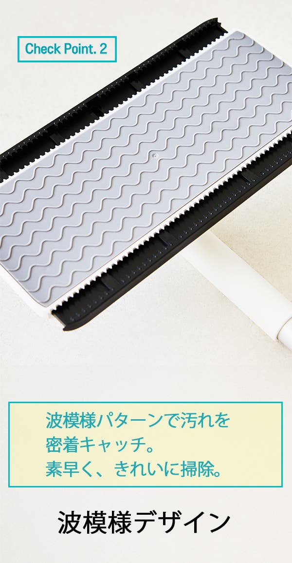 波模様のパターンが、床にこびり付いた汚れを密着キャッチ。よりスピーディーで、よりきれいな清掃が可能です。