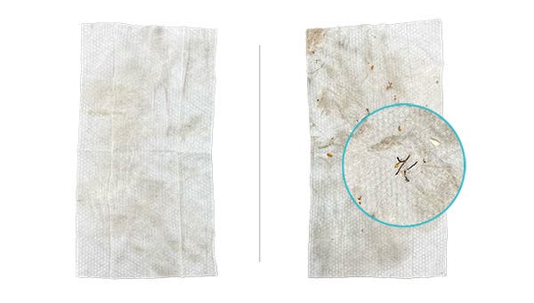 厚みのあるウルトラエンボス加工の不織布を使用し、含水量が非常に高いため、1枚で広い面積をしっかり清掃することができます。