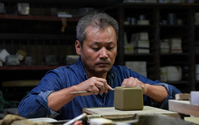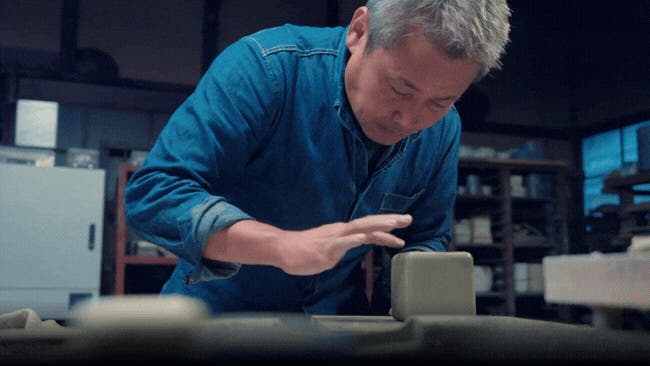 この設計の実現は容易ではありません。焼成温度の異なる本体と土台、それぞれの粘土の収縮率を緻密に計算して形にします。長年培われた職人の勘と技術の賜物です。