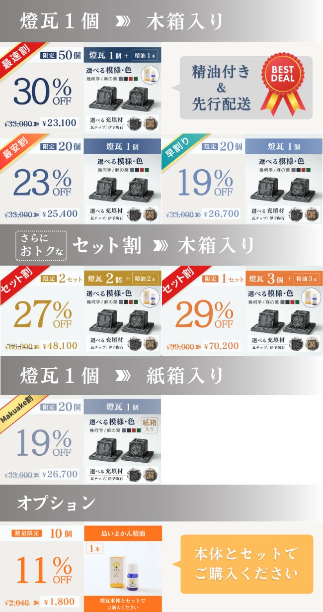 【最速割】30%OFF 燈瓦 × 1セット:精油付き