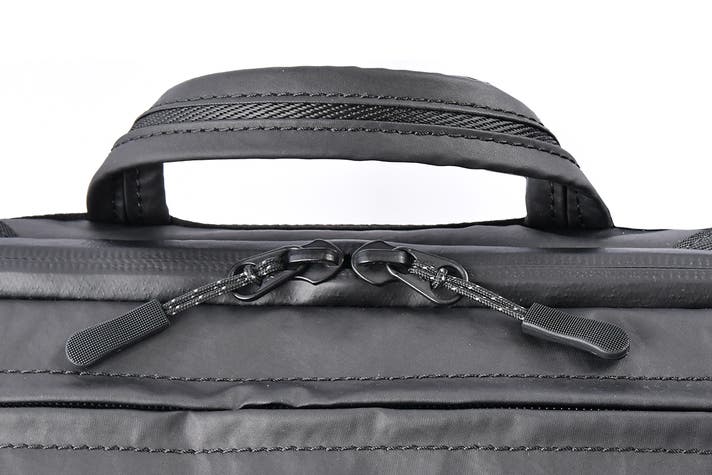 素材自体が持つ高い引き裂き強度と、高耐久樹脂由来の圧倒的なタフさが、突然の雨や水、汚れなどのアクシデントから大切な荷物を守り、永くお使いいただくことができます。