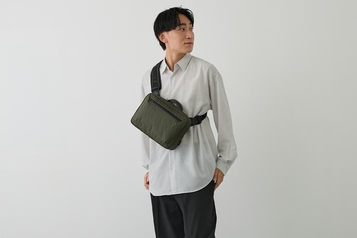 斜め掛けのスリングスタイルとシーンに合わせて使い分けられます。