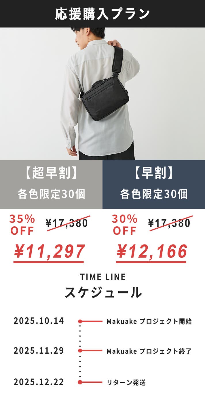 「Makuake(マクアケ)」は、実行者の想いを応援購入によって実現するアタラシイものやサービスのプラットフォームです。このページは、 ファッションカテゴリの 「「必要なものをミニマルに歩く」休日使いにちょうど良い。軽量高耐久ショルダーバッグ」プロジェクト詳細ページです。