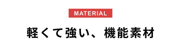 軽さとタフさが備わった機能素材を使用し、本体の軽量化を実現しました。