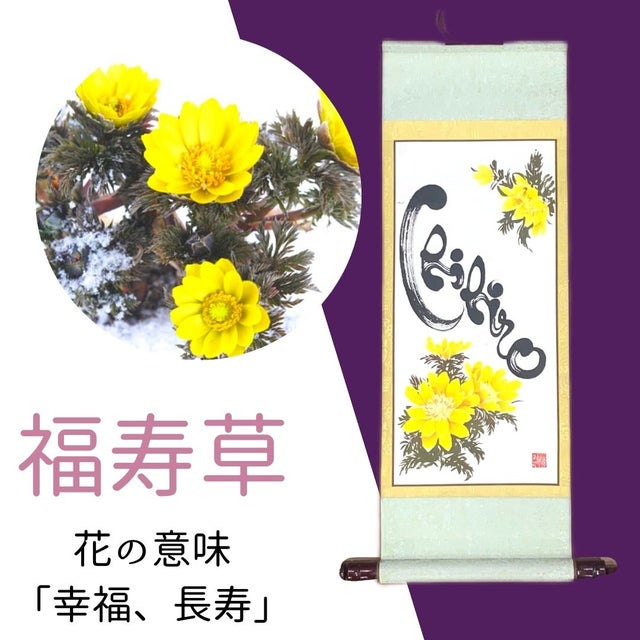 【限定25名】ベトナム書法 開運オーダーメイド掛け軸 (花:福寿草)