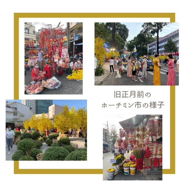 ベトナム人は、旧暦の正月を家族みんなで幸せに迎えることを大事に考える風習があります。立派な植木を飾り、新しい衣服に身を包み、ご馳走を食べ、新年の挨拶回りをします。