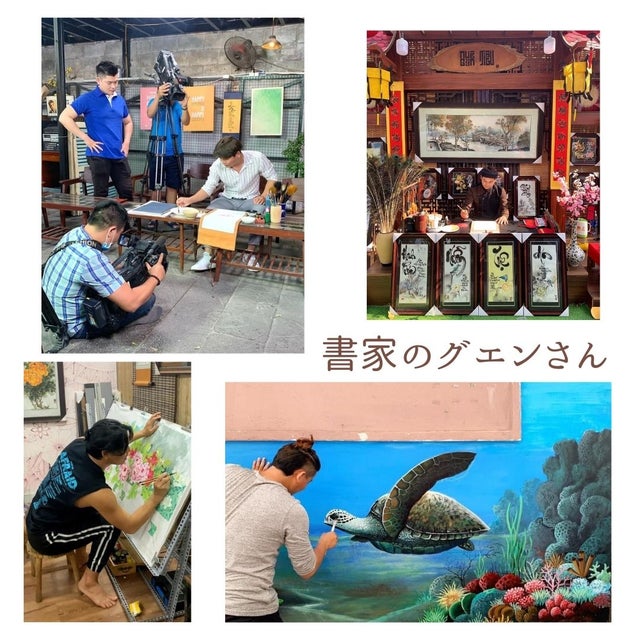 弊社のビジネスパートナーであるJ's Evolutionの代表取締役のMaikoさんは、ホーチミンで日本人ベトナム書法書家としても活躍されています。彼女のたくさんの書家仲間の中でも、ホーチミン青年文化会書法クラブのリーダーをされているグエンさんは、ベトナムのテレビでも紹介され、幅広い年齢層に人気のある一流の書家兼画家のお一人だそうです。