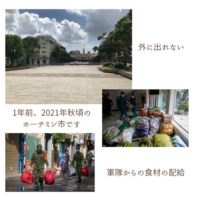 ベトナムの南部ホーチミン市は、かわいいアジアン雑貨とヘルシーな料理で観光客にも人気のベトナム経済の中心地です。新型コロナウイルス拡大の影響により、2021年の夏頃は「家から一歩も出てはいけない」厳しいロックダウン政策が行われていました。食料は軍隊から配給され、ホテルやレストラン、土産物屋など多くの店が休業もしくは廃業してしまい、失業者で溢れかえっていました。