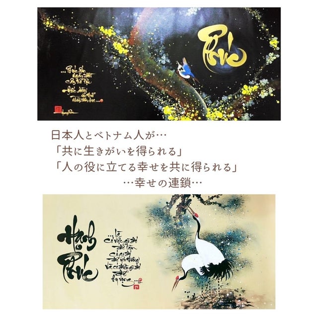 そこで、ベトナム人が幸せな新しい年を迎えるために取り入れるベトナム書法の掛け軸を日本の皆さんの家に飾ってもらいたいと考えました。