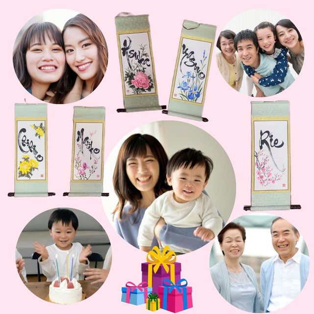こちらからお選びいただいた花と、お名前(※会社名、お好きな言葉でも可)をアルファベットでご指定いただき、こちらで掛け軸を作成いたします。