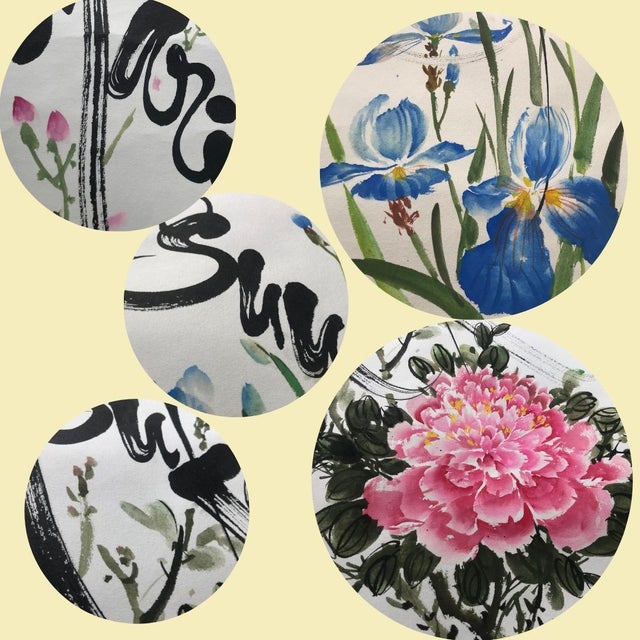 ベトナム書法 開運オーダーメイド掛け軸 (5種類の花、全種セット)