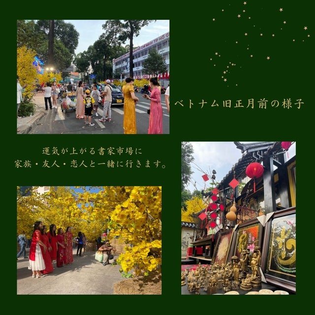 ベトナム人は、旧暦の正月(旧正月)を家族みんなで幸せに迎えることを大事に考える風習があります。立派な植木を飾り、新しい衣服に身を包み、ご馳走を食べ、新年の挨拶回りをします。