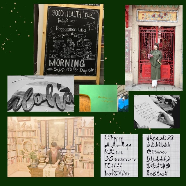 ベトナム在住の書家のMaikoさんは、普段は書法作品だけでなく、依頼を受けるとアルファベットカリグラフィーの看板なども描いています。開運で喜ばれるベトナム書法の技術を取り入れ、デザインを作るそうです。特に、縁起を担ぐ経営者の方のアルファベットサインロゴを作り、運気が上がると喜ばれるとのことです。