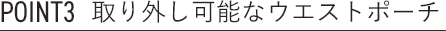 製品のフロント部分は取り外しができ、ウエストポーチとしても活躍。ランニングや近所へのお出かけ時の貴重品入れに最適。