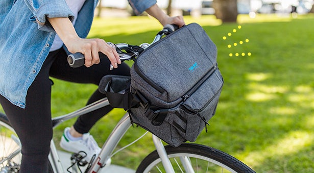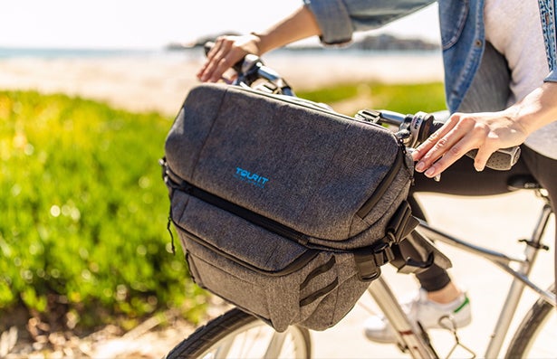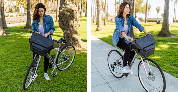 ストラップで自転車のフロント部分に取り付けることができ、カゴなしの自転車に乗る際には、肩の負担を軽減してくれるので、自転車でのレジャーでも大活躍。