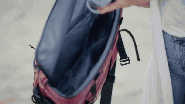 バッグの底には2本のストラップがあり、ブランケット、衣類、タオル、ヨガマットなどを取り付けられます。