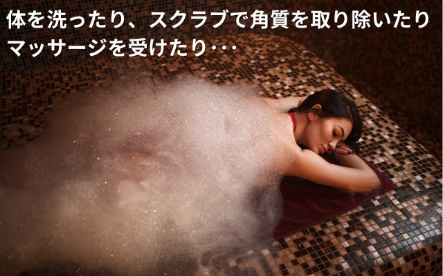 ハマムでは、体を洗ったり、スクラブで角質を取り除いたり、マッサージを受けたりすることが出来ます。社交の場としても機能し、友人や家族との交流の場となることもあります。