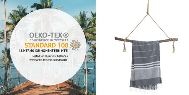 OEKO-TEX® STANDARD 100認証を取得しているTOWEL TO GOのハマムタオルは、その安全性と持続可能性が証明されています。