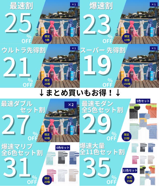 【35%OFF爆速大量全11色セット割】TOWEL TO GO×11枚 先着15名