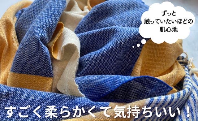 A: 製造時の残留物を取り除き、繊維構造を開くために、初めて使用する前にハマムタオルを一度洗濯することをおすすめします。