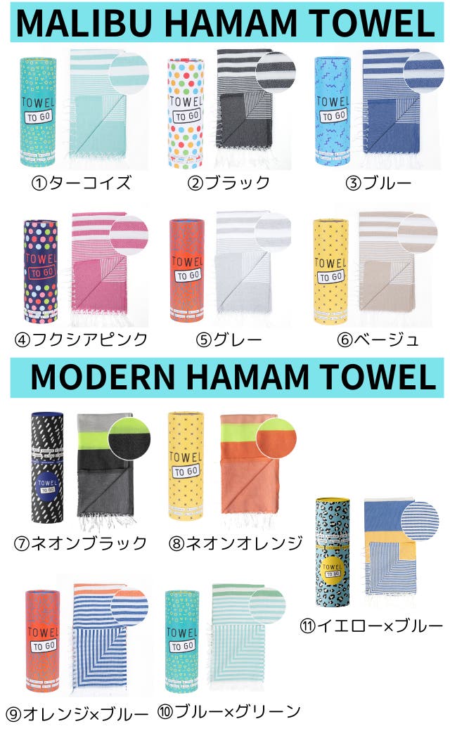 【31%OFF爆速マリブ 全6色セット割】TOWEL TO GO×6枚 20名様