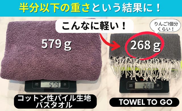 TOWEL TO GOハマムタオルは信じられないほど軽量でコンパクトで、持ち運びがとても楽です。