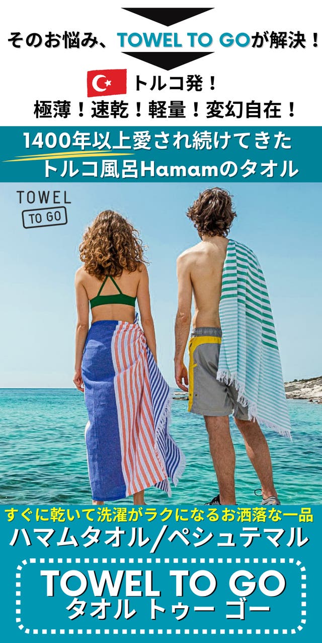 商品の配送が完了するまで、弊社は「TOWEL TO GO」の日本における独占販売権を有する正規代理店です。詳細に関しては、ページ下部のリスク&チャレンジをご確認下さい。