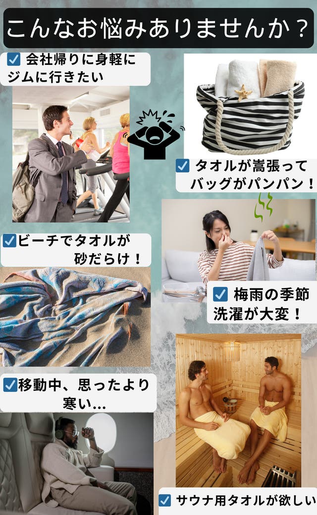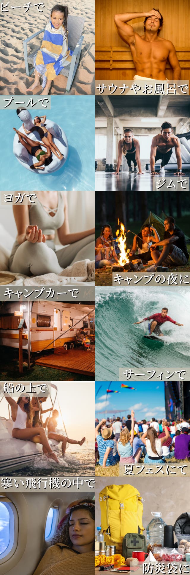 - 【薄くて軽いのに大判サイズ】コンパクトなので旅行や仕事帰りのジム、サウナのお供に!防災袋に1つ