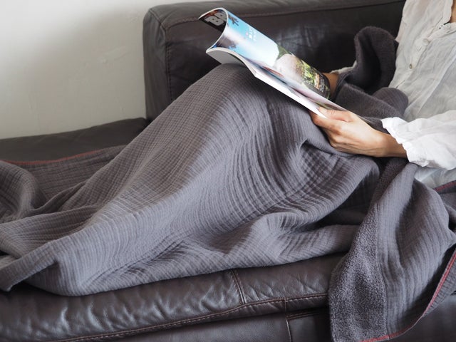 小さくたためソファに置いてもあまり邪魔になりません。さらりとした感触のガーゼ素材は軽く、季節を問わずにお使い頂けます。(写真はグリーン)