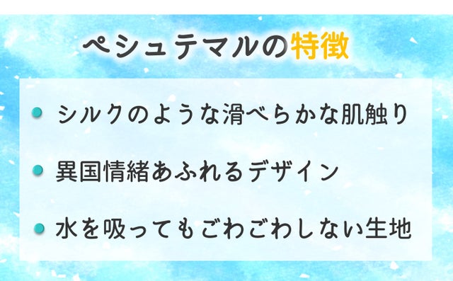 その認証をクリアしたペシュテマルは、肌が弱い女性や乳幼児でも安心してご使用いただけます。