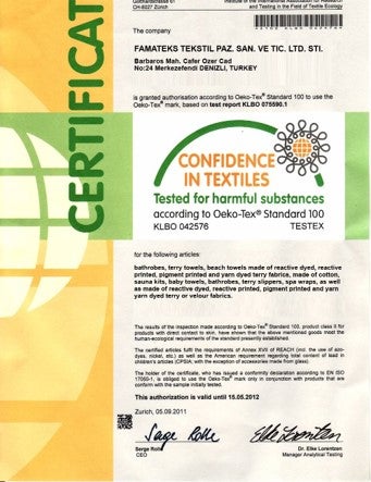 ペシュテマルで用いられるコットンは、世界最高水準の安全な繊維製品の証である「エコテックス®スタンダード100」認証を受けています。